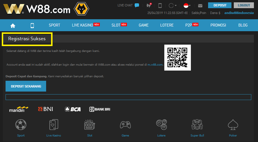 Selamat, anda telah berhasil daftar W88 dan memiliki akun baru di W88! Apabila diperhatikan, cara mendaftar W88 seluruhnya dapat diselesaikan dalam satu halaman saja. Sangat mudah bukan? Sekarang pemain dapat melakukan deposit uang untuk berpartisipasi langsung dalam permainan seperti bermain kartu kasino online, sepak bola taruhan, Keno dan banyak permainan yang menarik untuk Anda jelajahi. Selain itu, jika Anda memiliki pertanyaan dan ketidakpastian, Anda bisa menghubungi langsung layanan pelanggan W88 yang tersedia pelayanannya selama 24 jam.