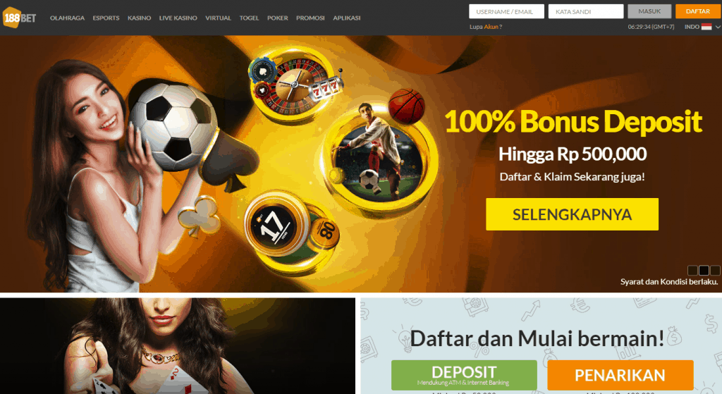 188bet Indonesia merupakan situs taruhan online terbesar dan terpercaya di pasar Asia. 188Bet dimana menawarkan taruhan olahraga, kasino, poker, slot dan togel. Situs taruhan 188bet didirikan pada tahun 2006 dengan lisensi Isle of Man untuk menyediakan taruhan online terkemuka di Asia dan Eropa.